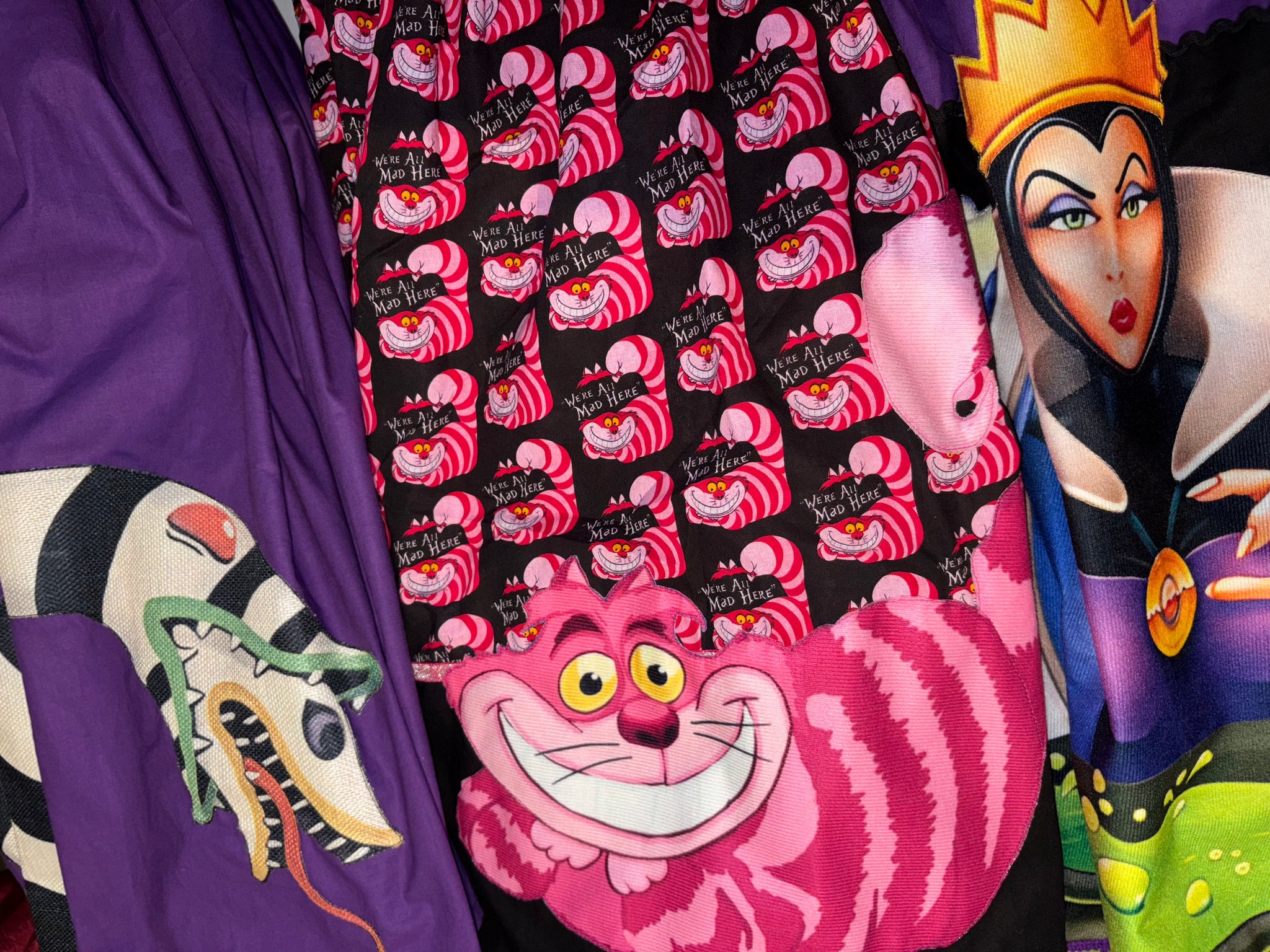 Celebrate Halloween in these one of a kind skirts fan art of the sand worm skirt, the Cheshire Cat skirt & the Evil Queen skirt!