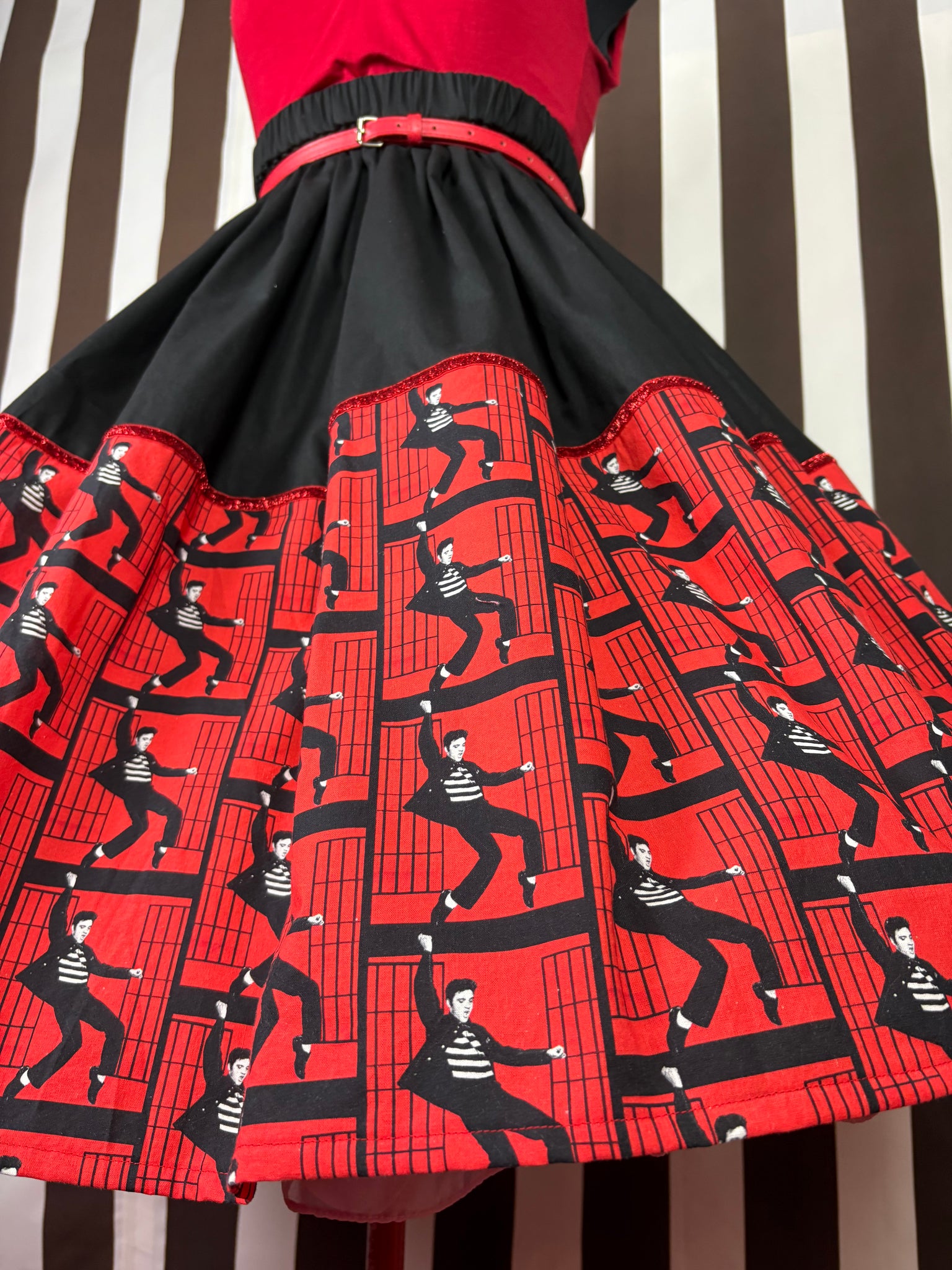 Ready to do the jail house rock in this Elvis fan art inspired one of a kind skirt!!